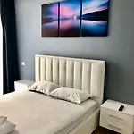 New Modern Apart Near Center At Vivalia Grand V9 Appartamento, di 70 m^2, dispone di un balcone dotati di un impianto di climatizzazione, oltre che di una TV a schermo piatto con canali satellitari. La struttura è arredata e include una scrivania tra gli arredi. L'alloggio ha 2 camere da letto. Quest'appartamento offre 1 bagno.